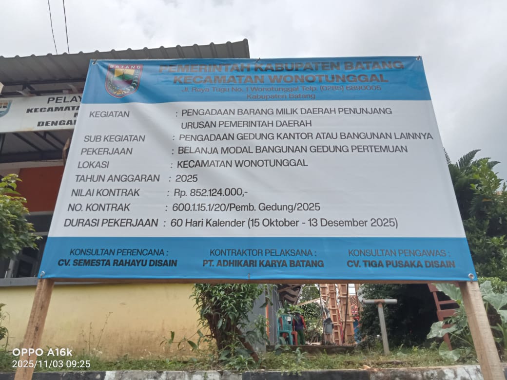 Pengerjaan proyek pembangunan gedung Kecamatan Wonotunggal, Kabupaten Batang, diduga abaikan Keselamatan dan Kesehatan Kerja (K3). Pekerjaan yang menelan anggaran dengan total kurang lebih sebesar 900 juta yang bersumber dari anggaran APBD.